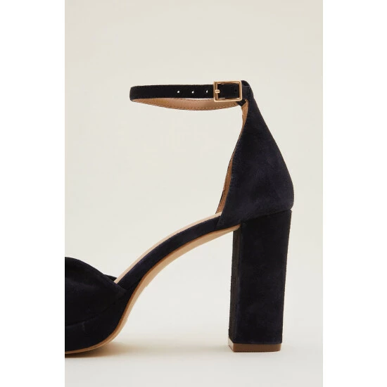 A new, contemporary style for them that will dress up all of your outfits. Cut from 100% suede leather in a statement navy colour, these platforms feature delicate ankle straps and twisted detail at the open toe. They’ll be wearing these at their next special occasion.