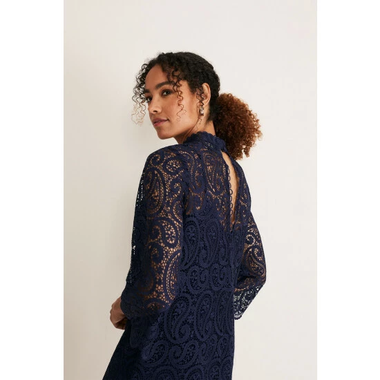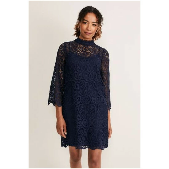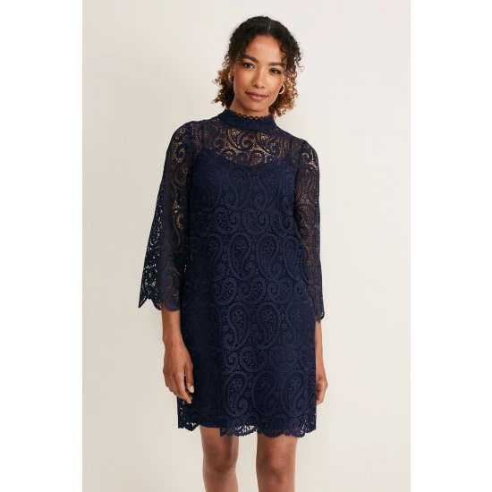 Our Verity dress is a contemporary style we can’t wait to wear. The exquisite guipure lace detail on our above the knee dress makes this a feminine, standout style. Our Verity dress features gorgeous bell style sleeves and cut out detailing to the back. Wear it with heels and accessories to your next wedding or dress down with sandals for a stylish holiday evening look. This style is responsibly sourced. This style has been made from recycled polyester, giving materials that would have ended up in landfill a new lease of life.