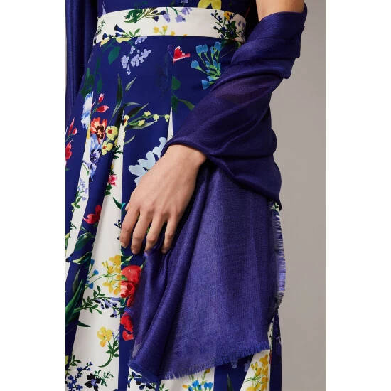 A semi-sheer scarf with frayed edging. Layer over casual tops or use as a cover up for occasion dresses.