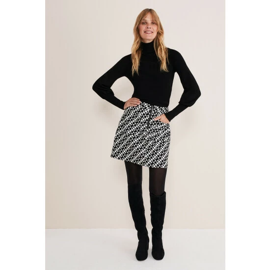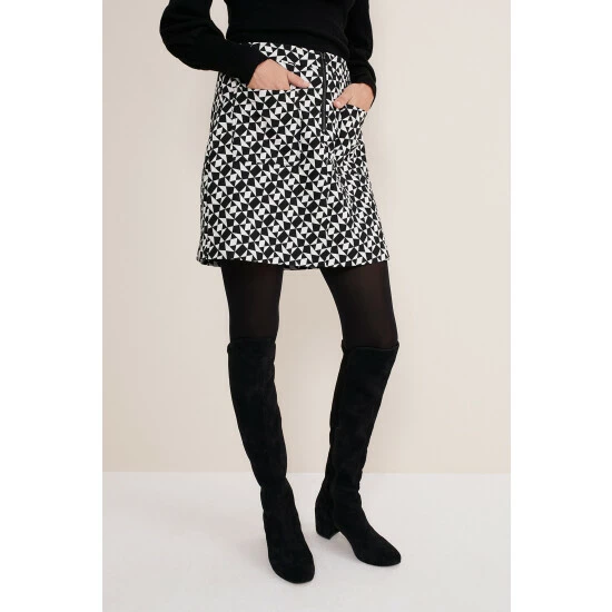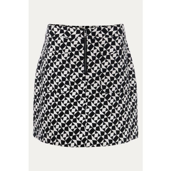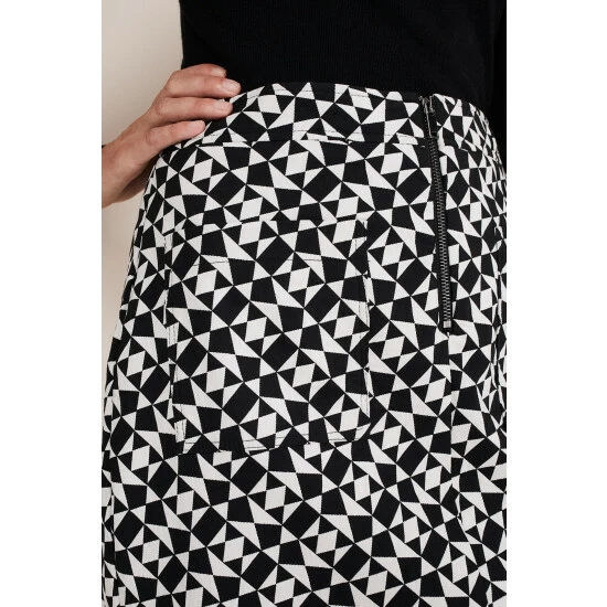 A statement skirt for your capsule wardrobe. Designed in a stunning black and white geometric print, our Bregitta skirt features handy pockets and front zip detailing. We wear ours with a black jumper, tights and knee-high boots for a look that will take you from desk to dinner in an instant.
