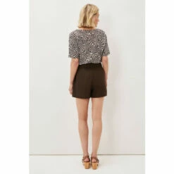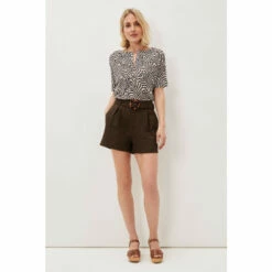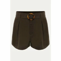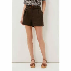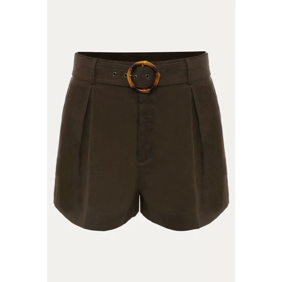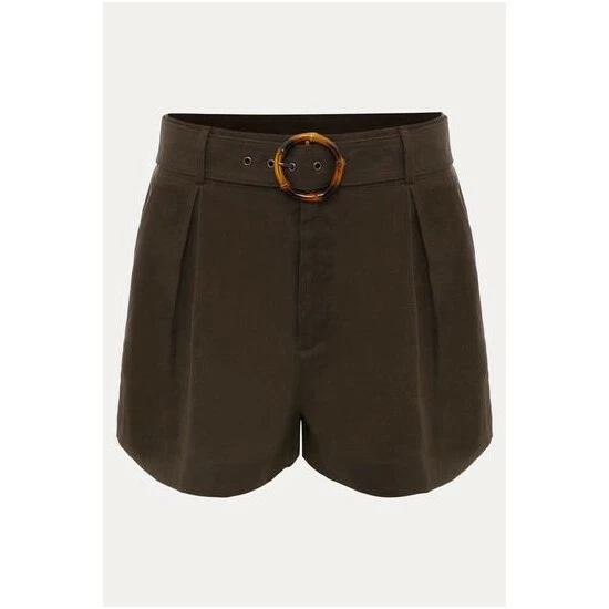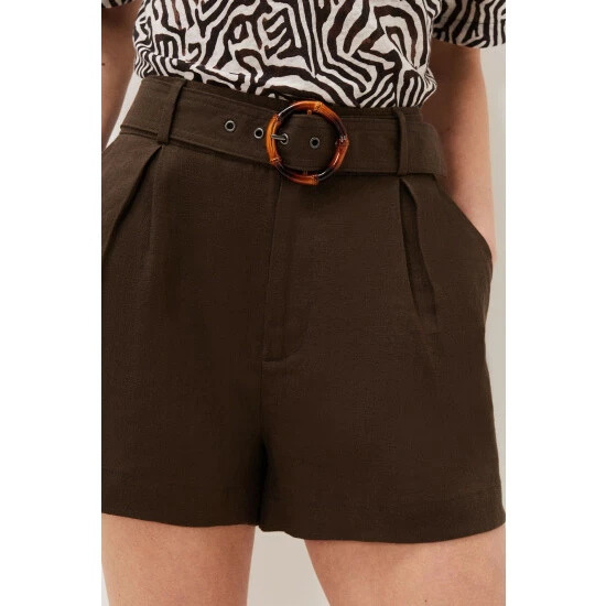Your new go-to summer shorts. Cut in a high-waisted silhouette, these 100% linen shorts are designed with inverted pleats, handy pockets and finished with a matching tortoiseshell belt. Wear with any of your tops or blouses and sandals for a casual, summer look.