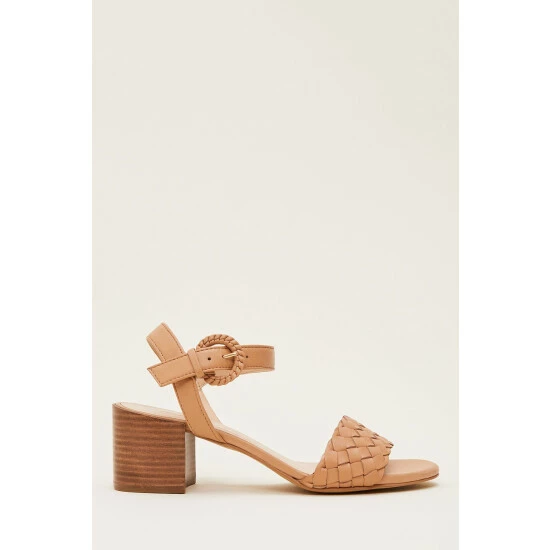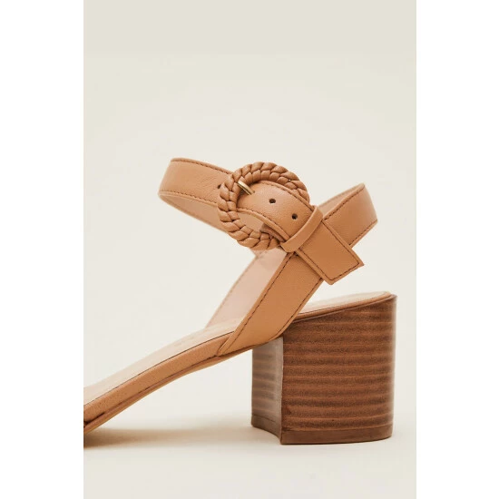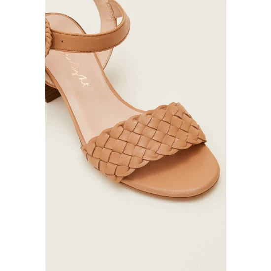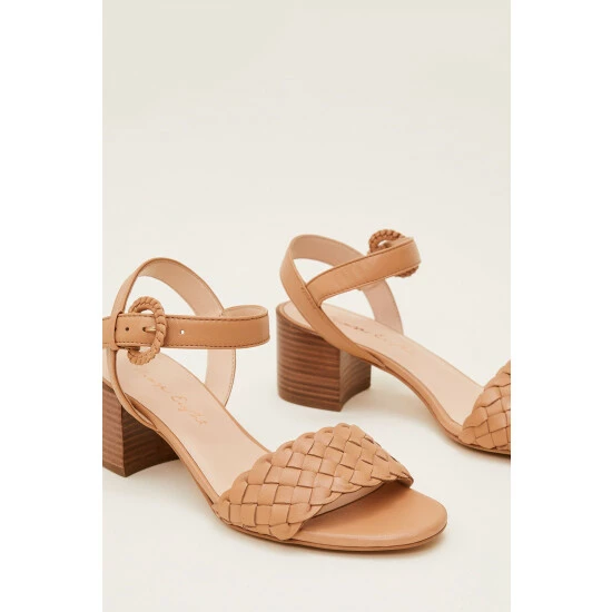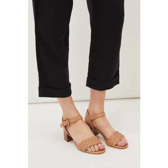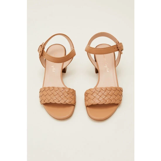 Crafted from 100% leather, these versatile tan heeled sandals are perfect to pair with your occasion styles or simply to dress up your everyday outfits. Set on a block heel, these sling-back style sandals feature woven detailing at the open toe strap.