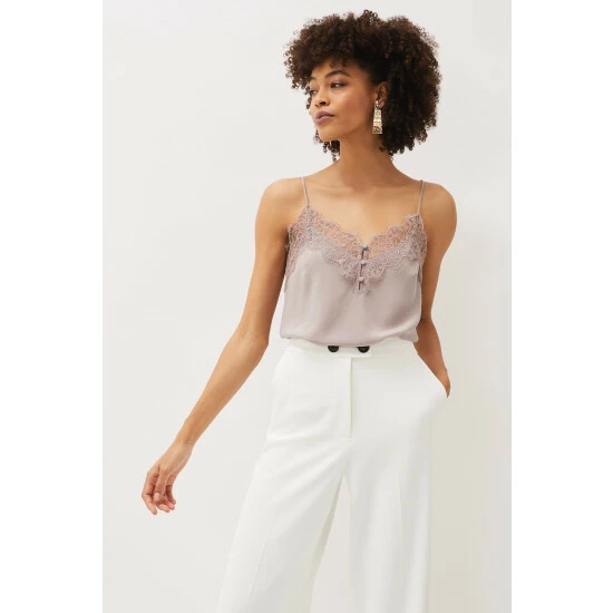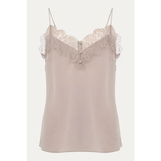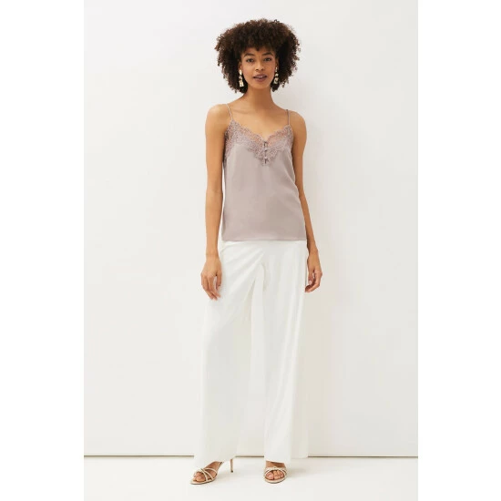 A new style for us this season. This stylish cami is designed in 100% soft silk and features feminine lace detailing along the V-neckline. The perfect evening or occasion separate to invest in.