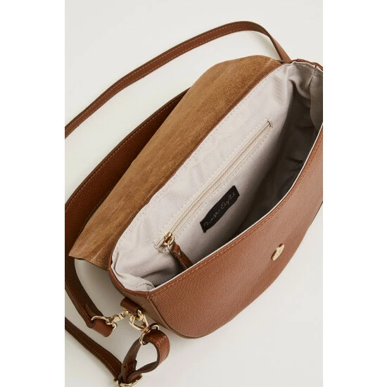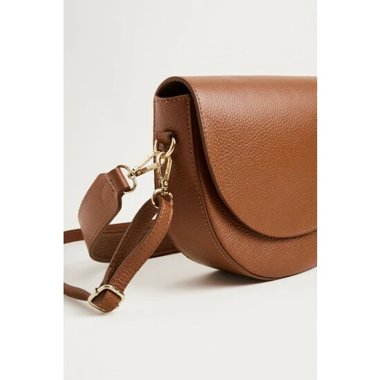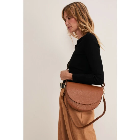 Meet your new go-to handbag. Crafted from 100% leather, our cross body bag is designed in a versatile tan shade and half moon shape with double straps.