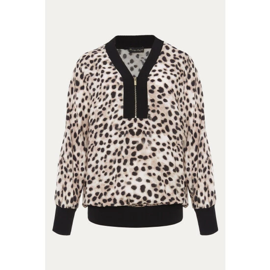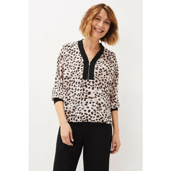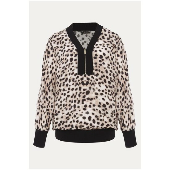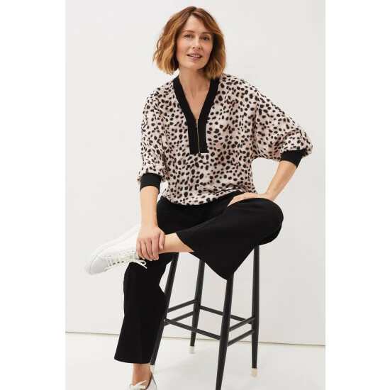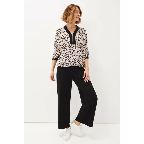 Leopard print will never go out of style. That s why we’ve designed this versatile and stylish blouse. Featuring contrast accents and a zip front, this style looks best paired with our jersey wide leg trousers and trainers.