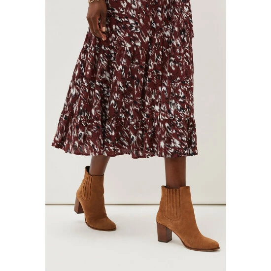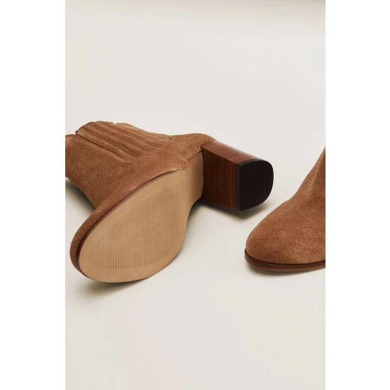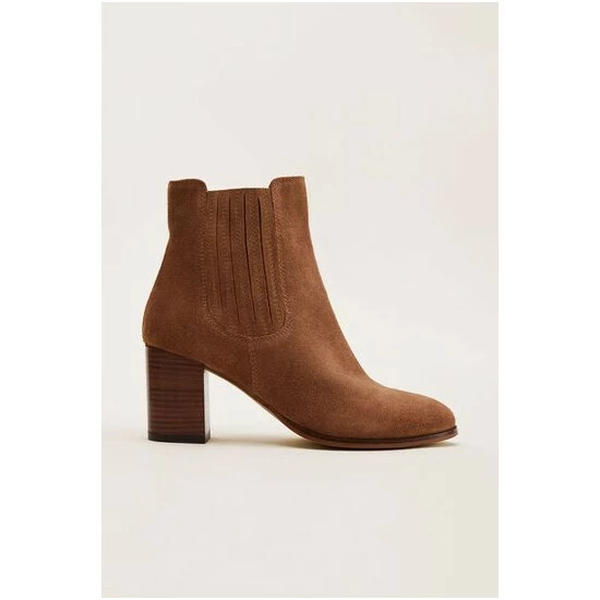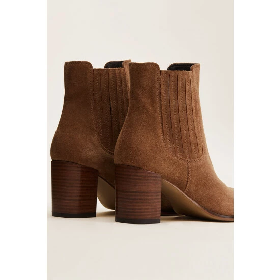 A brand new style for them. Their Camila ankle boots are a wardrobe staple that will see you through the seasons. Crafted from soft tan suede with an elasticated detail for easy slip-on, these stylish boots are finished with a 7cm block heel and a round toe. These boots feature padded insoles to cushion and contour for extra all-day comfort. By purchasing this product, you are supporting responsible leather manufacturing through the Leather Working Group.