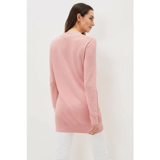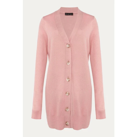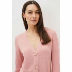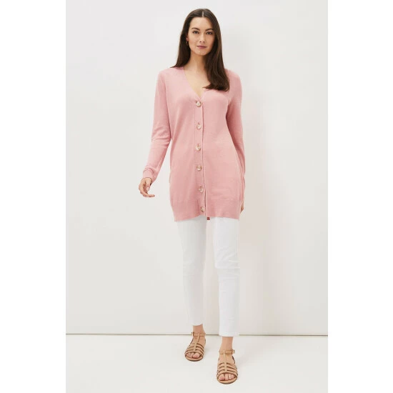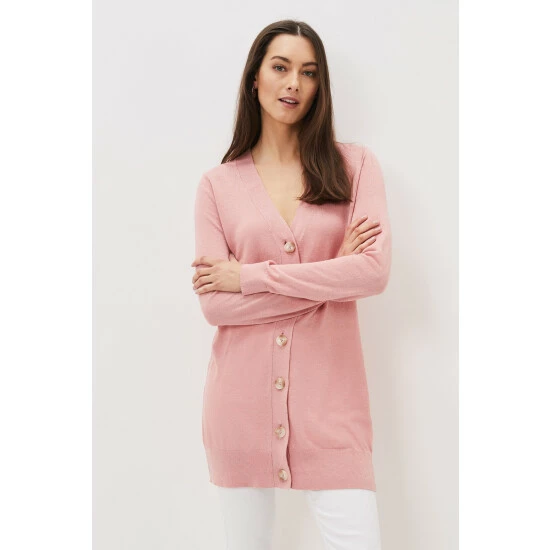 Every wardrobe needs a versatile cardigan, our Camille is just that. Designed with a relaxed silhouette in a lovely pale pink shade with contrasting tortoiseshell detailed buttons, this is soon to become a favourite that looks great over both jeans and dresses.