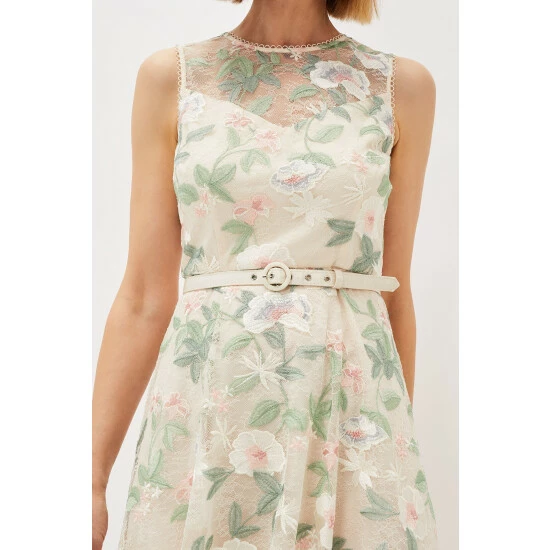A stunning fit and flare dress embroidered throughout with delicate florals, we guarantee that you will feel confident and comfortable in this beautiful style.