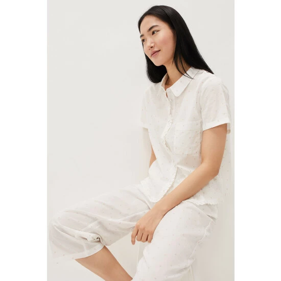 Sleep peacefully in Phase Eight’s new pyjama set. Made from 100% cotton, their short sleeved set is decorated with pretty pale pink spots and the trousers have an adjustable waist tie for maximum comfort. All of their pyjama styles come with a matching eye-mask and scrunchie in a self-tie bag.