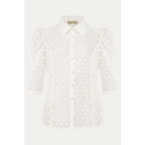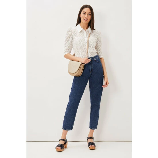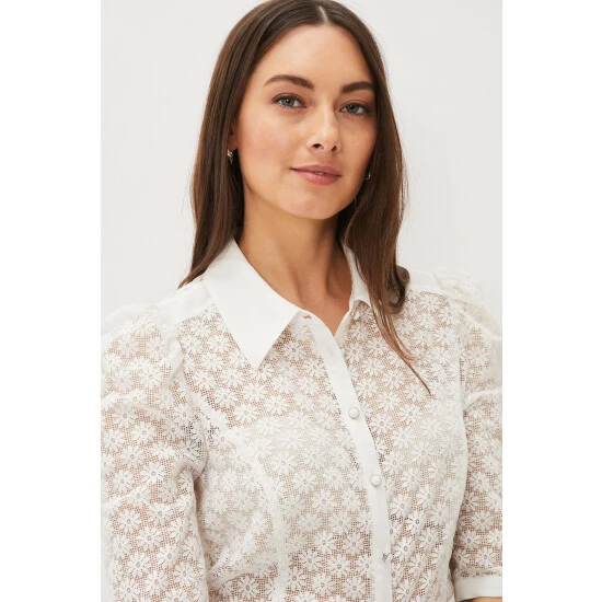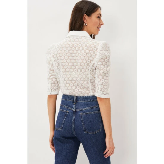 The perfect addition to your spring/summer wardrobe. Designed with a delicate daisy lace pattern throughout, our Daisy blouse features an ivory classic collar and button placket and front seam detailing. They wear ours with jeans for a desk-to-dinner look. By choosing our cotton products, you’re supporting our investment in Better Cotton’s mission. This product is sourced via a system of mass balance and therefore may not contain Better Cotton.