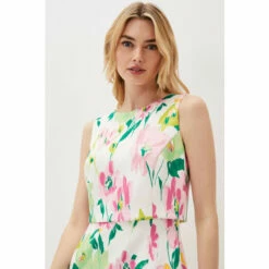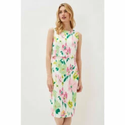 An event-ready style fit for all your upcoming occasions. Designed with a feminine floral print and cut from scuba material, this slim fitted style features overlay detail. They wear theirs with all the accessories, for perfect wedding guest style.
