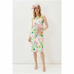 An event-ready style fit for all your upcoming occasions. Designed with a feminine floral print and cut from scuba material, this slim fitted style features overlay detail. They wear theirs with all the accessories, for perfect wedding guest style.