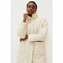 A super chic coat to invest in for spring. Their Fae style is designed from a soft quilted fabric and features a funnel neckline, pale gold trims, press stud fastenings and two deep patch pockets at the front. Easily layer it over all your day and evening looks. Fully lined and shower proof.
