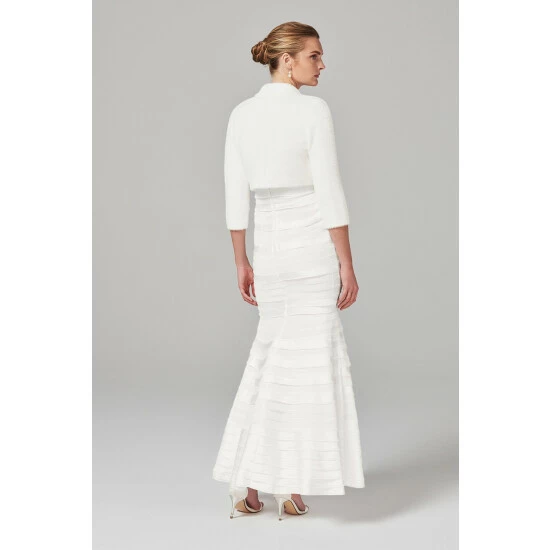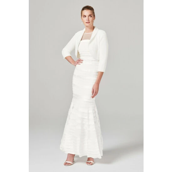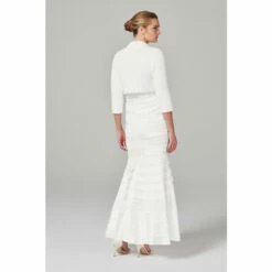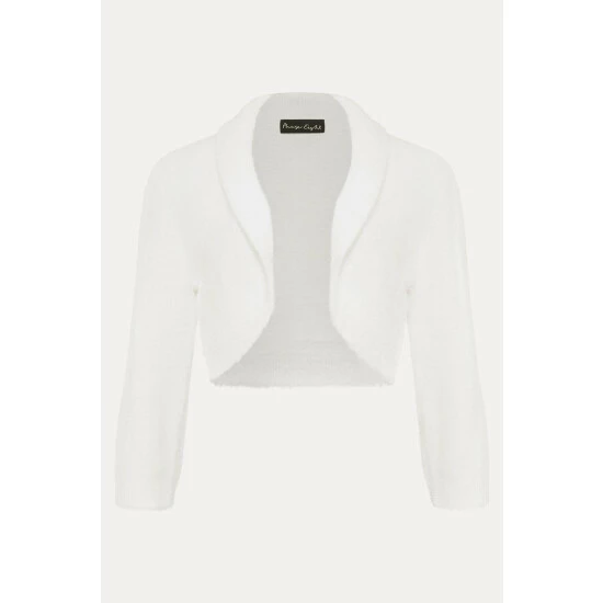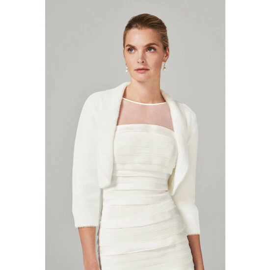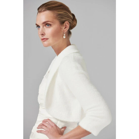 Add the luxuriously soft Fay Fluffy Bolero for a sophisticated take on bridal wear. Designed in a fitted collarless silhouette with an open front, this style is perfect for winter or autumnal weddings.