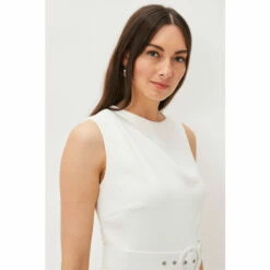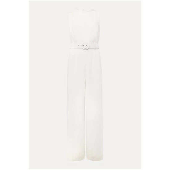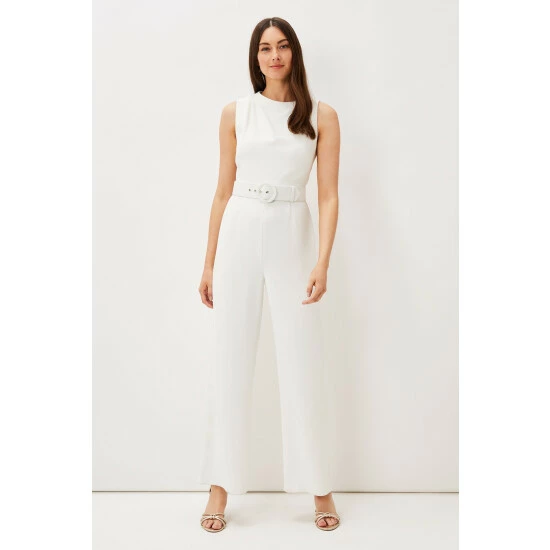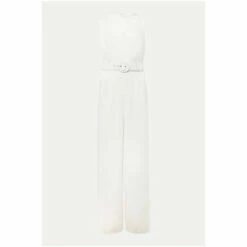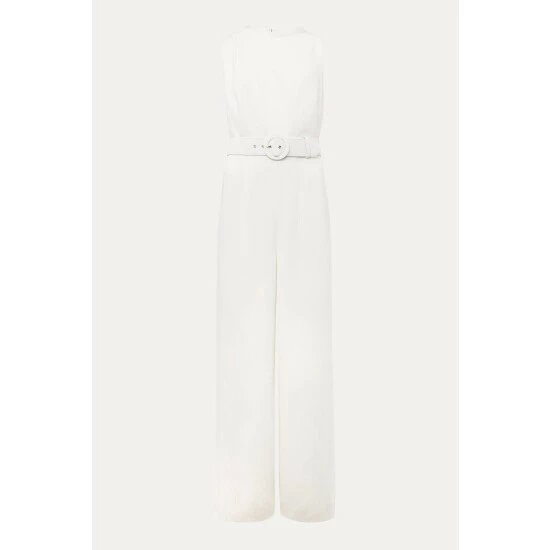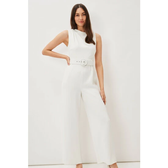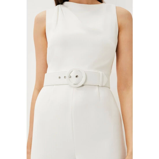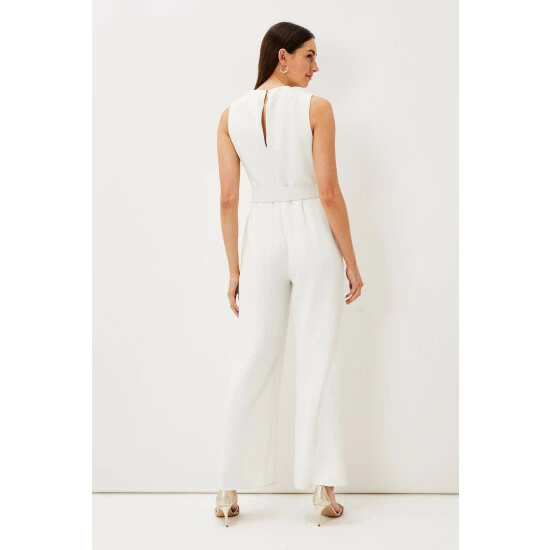 A statement style for your next special occasion. Our white sleeveless jumpsuit features pleated detailing and a matching covered belt, with the silhouette coming down to a flattering wide leg. Wear with heels for a look that is sure to wow.