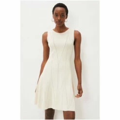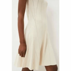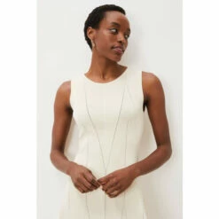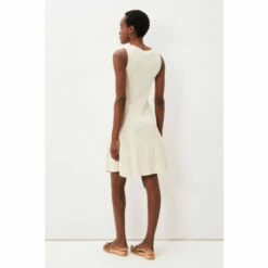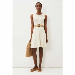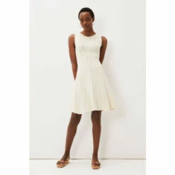 The perfect spring/summer dress. Crafted with subtle stitch detailing, their Jaya dress features a skater style skirt which flatters all sizes, and falls to just above the knee. They pair theirs with neutral accessories for a light tonal look.