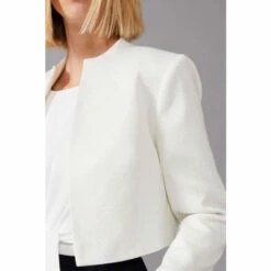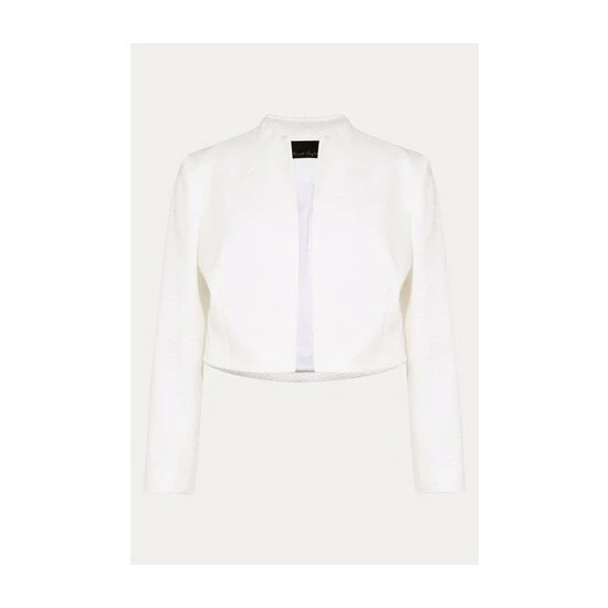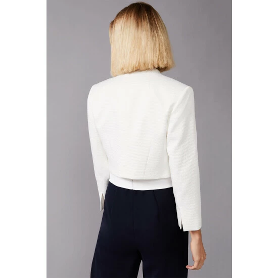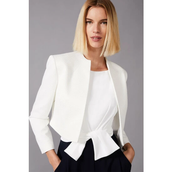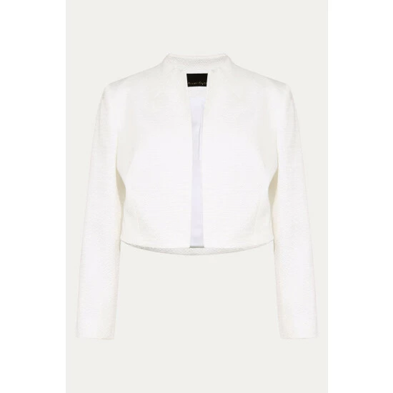 Perfect for special occasions, this fitted textured jacket is designed with flattering seam detailing and a curved open front for an elegant silhouette.