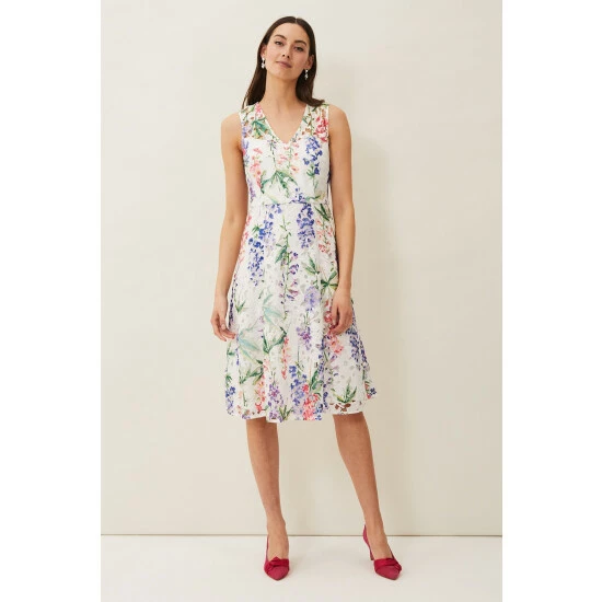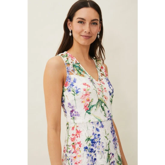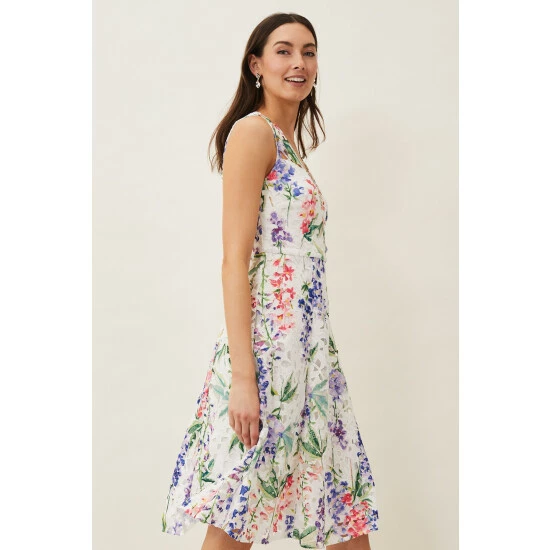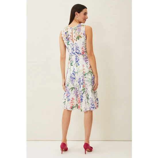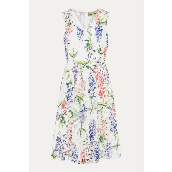 Part of Phase Eight’s Sustainably Sourced Collection. This style has been made from recycled polyester giving materials that would have ended up in landfill, a new lease of life. This product contains recycled polyester a renewed material that addresses the fibre s environmental impact by diverting waste from landfill. Hand-painted inhouse by Phase Eight’s talented design team, this delicate lace occasion dress features fresh cascading florals inspired by the delphiniums in Monet’s garden in a gentle fit and flare silhouette.