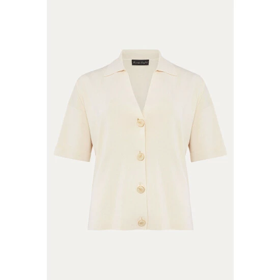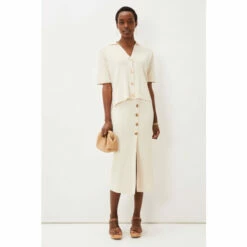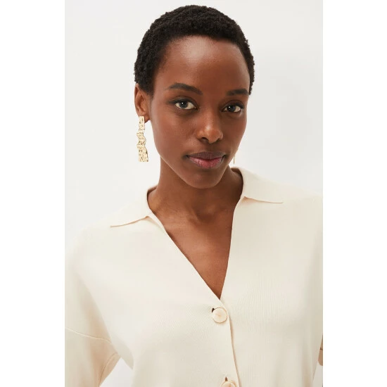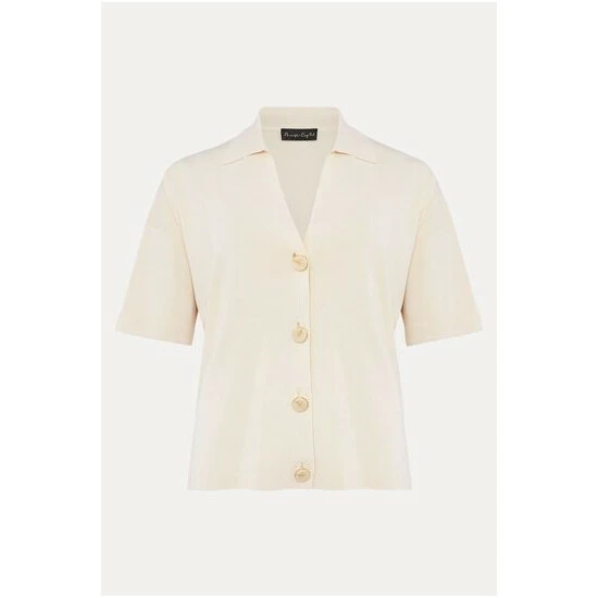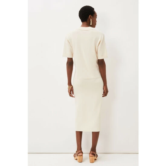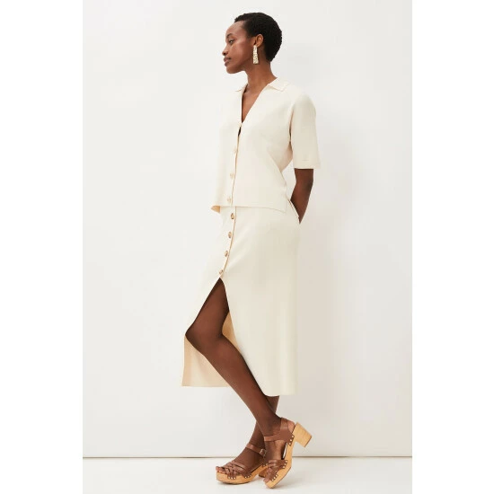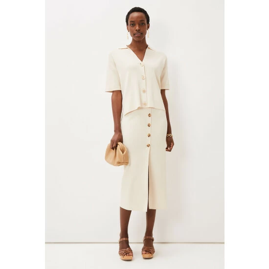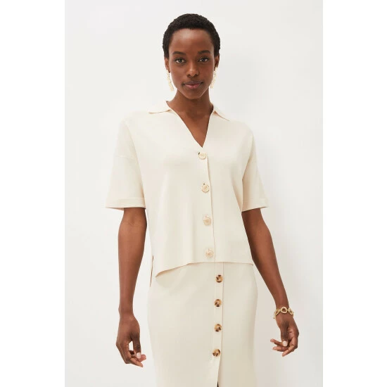 The perfect transitional piece to add to your spring/summer wardrobe. Phase Eight’s mae button up knit features a T-shirt silhouette, collared neckline and working tortoiseshell buttons, making it a versatile piece. For co-ord style, wear with their mae button up skirt.