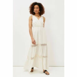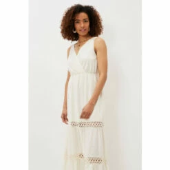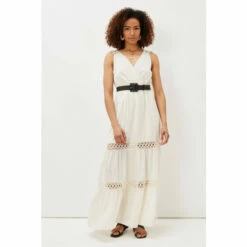 A delicate white dress to add to your capsule wardrobe. Cut from comfortable 100% cotton, Phase Eight’s dress features a flattering faux wrap bodice and flowing silhouette. Delicate broderie details decorate the straps and skirt. Wear with sandals for a warm-weather look.