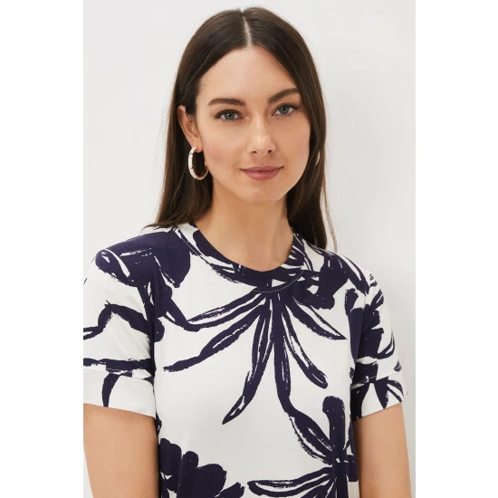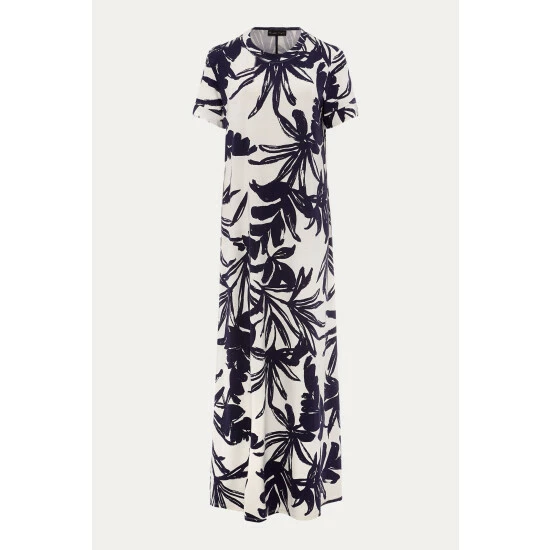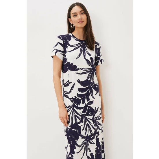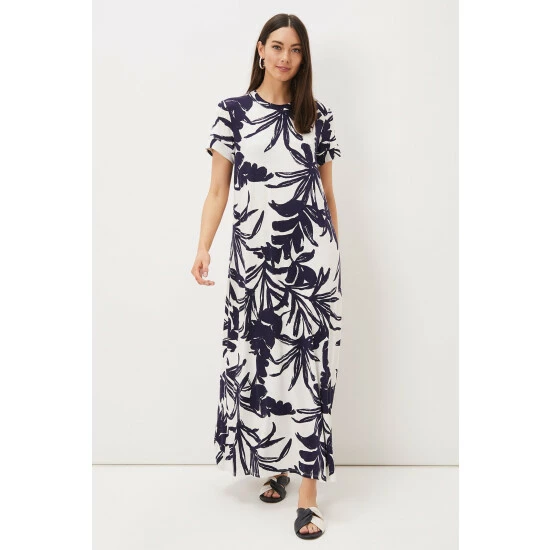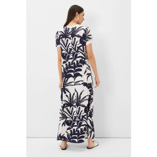 The perfect printed dress for the weekends and holidays. Designed in an on-trend palm print in navy and white, our maxi dress features a comfortable loose fit, a crew neck and short sleeves. Just add sandals for an stylish, contemporary look. Part of our Sustainably Sourced Collection. This style has been made from certified renewable wood sources. LENZING ™ ECOVERO ™ viscose uses a responsible production process, generating up to 50% lower emissions and water impact than generic viscose. LENZING ™ and ECOVERO ™ are trademarks of Lenzing AG. Find out more about the sustainable fibres we source: https://www.phase-eight.com/about-us/sustainably-sourced/sustainable-fibres.