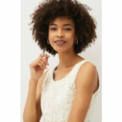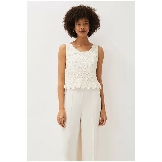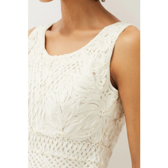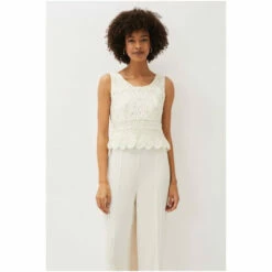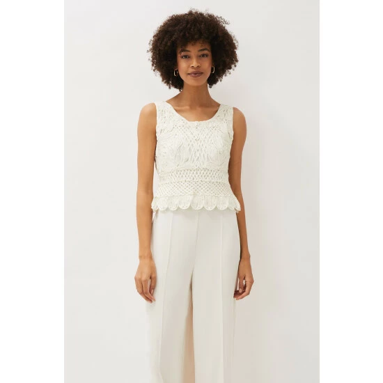 We know you love their tapework lace dresses – so they’ve designed this beautiful tapework lace top, for those who want a stylish alternative to a dress. Cut in a sleeveless silhouette, this style is finished with a feminine scallop hem.
