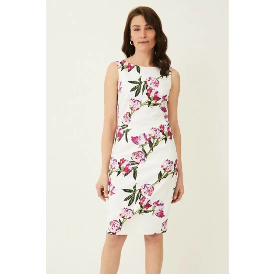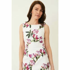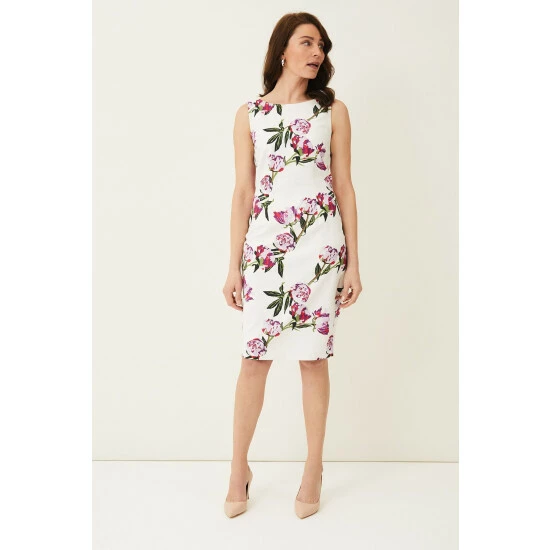 The striking peony print on Phase Eight’s Rochella Dress is sure to turn heads at your next occasion. Cut in a fitted sleeveless silhouette, this style is finished with a high neckline and split at the back of the skirt for ease of movement.