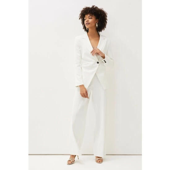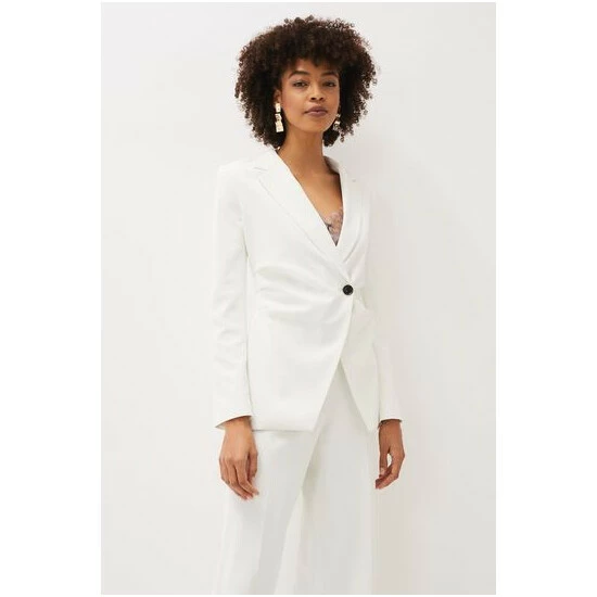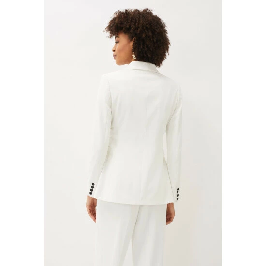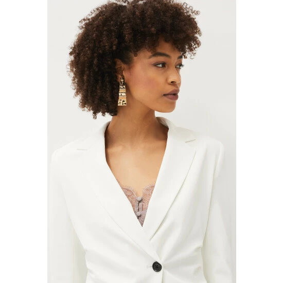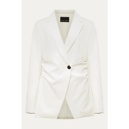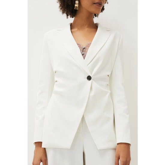 This sophisticated suit jacket is cut in a sharp silhouette, with a contrast single-button fastening on the bodice and gathering at the waistline.