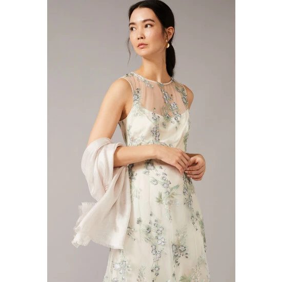 This soft scarf is finished with frayed edging. Layer over casual tops or use as a cover up for occasion dresses.