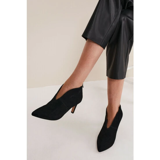 The perfect work to evening style. Crafted from 100% suede, our heeled boots feature a deep V-cut and comfortable mid heel.