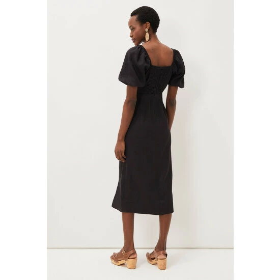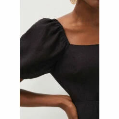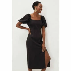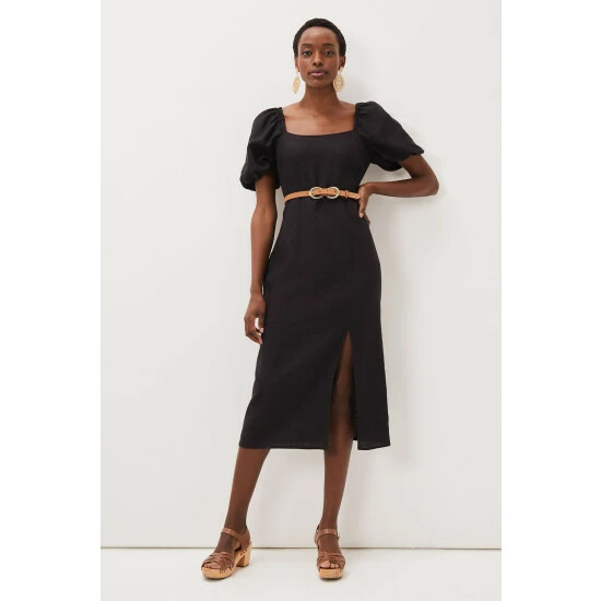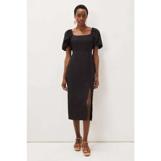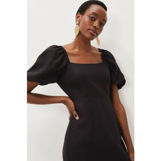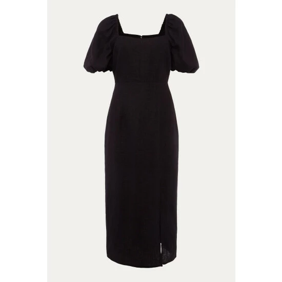 A contemporary style that you’ll reach for time and time again. Designed in a versatile black shade, their linen dress features an on-trend square neckline and puff short sleeves as well as a short slit along the front. Just slip on sandals and you’re ready to go.