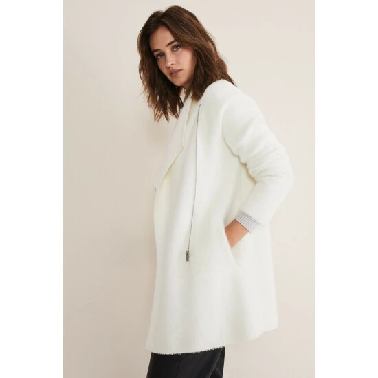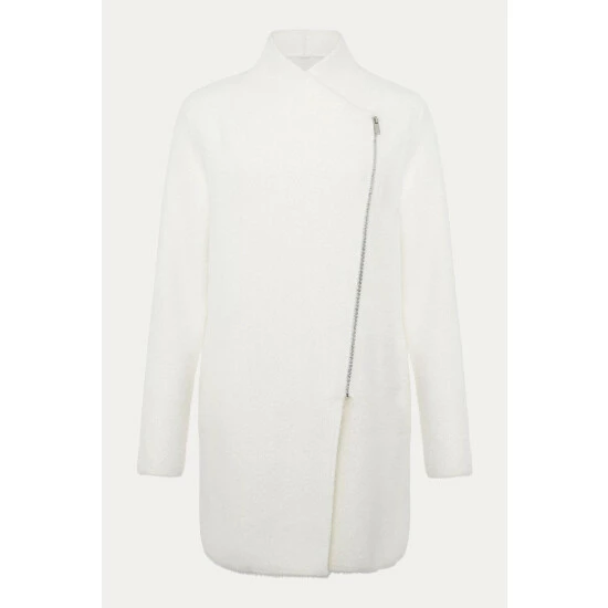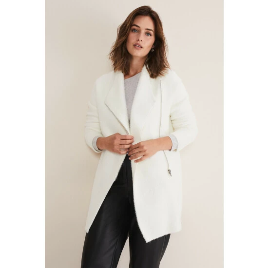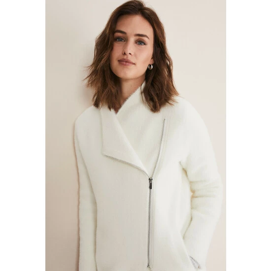 A lightweight fluffy knit that’s perfect to cosy up in this season. Our white Fia knit features a cosy wrap-around design and fastens with an exposed zip. Its versatile, classic silhouette makes it one of those pieces you will come back to year after year.