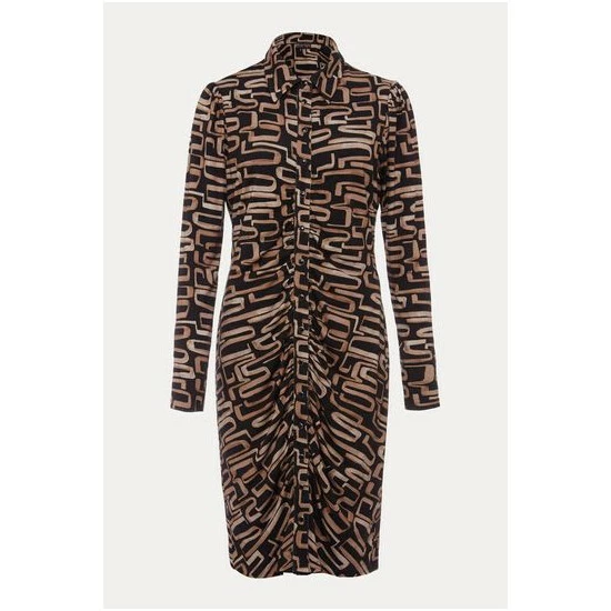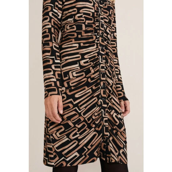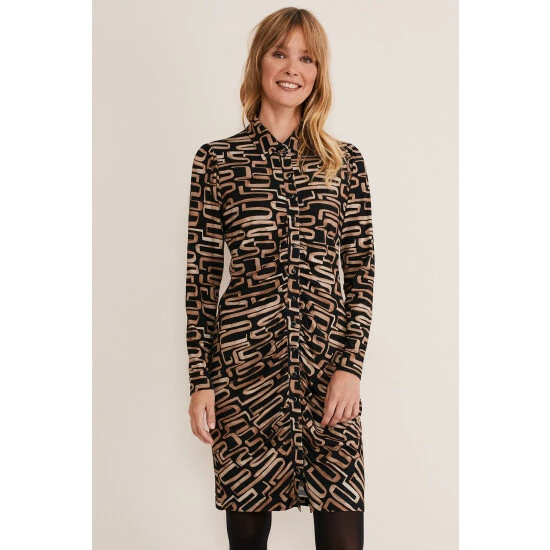 Meet your new do-it-all dress. Designed in an on-trend abstract print in a timeless colour palette, our Flora long sleeved dress is designed to a slim fit silhouette and features button down detailing. We wear ours with tights and boots for the perfect desk-to-dinner look.