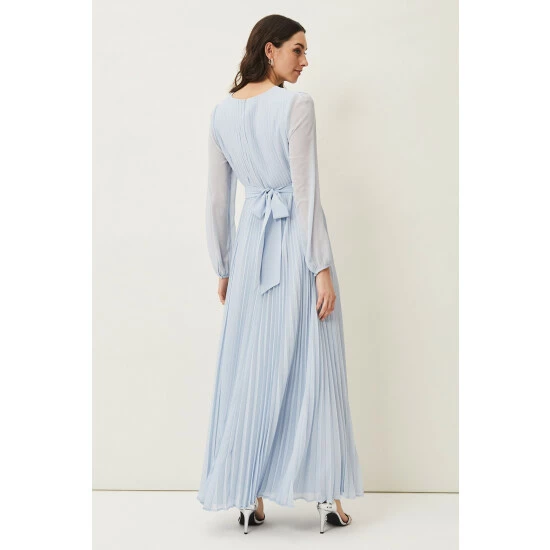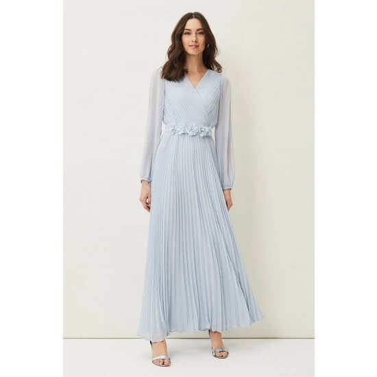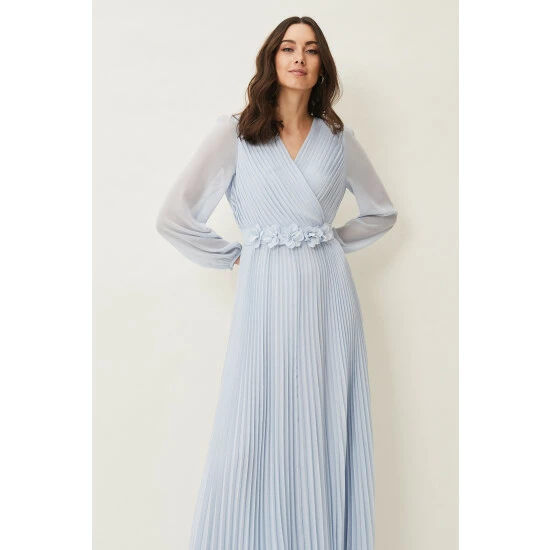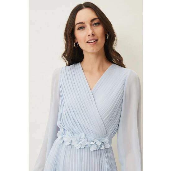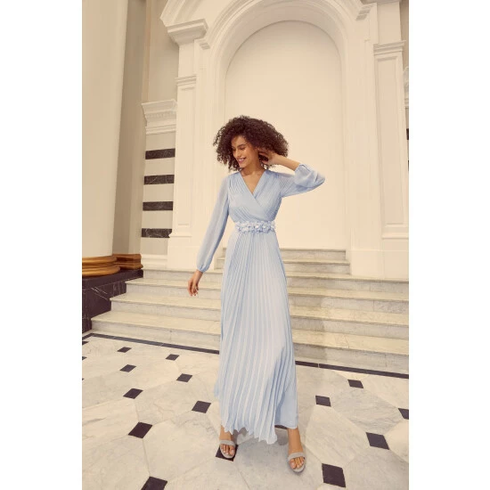 Pleated throughout for plenty of movement, this Alecia Maxi Dress is a truly romantic style, that’s perfect for bridesmaids. Designed with semi-sheer blouson sleeves and a faux wrap bodice, this dress is finished with a floral appliqué waist tie.