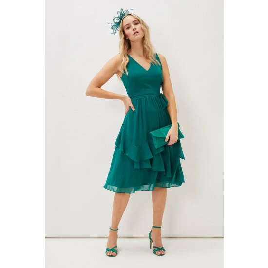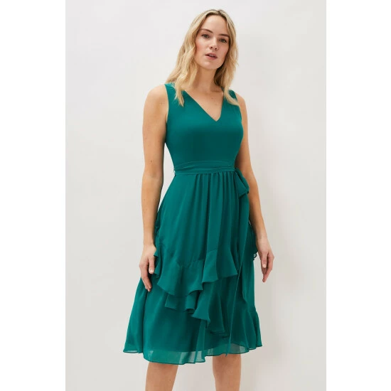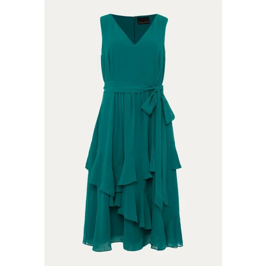 A contemporary silhouette that’s perfect for parties, the Breesha Dress is designed in a sleeveless silhouette with an asymmetric tiered skirt that creates wonderful movement as you walk. This style has a matching waistband that you can adjust and tie as you wish.