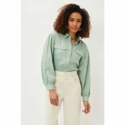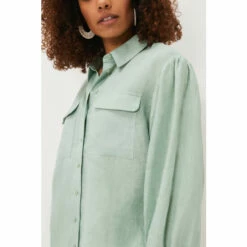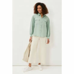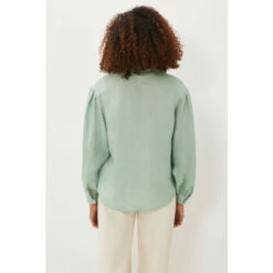 A must-have for your spring/summer wardrobe. Cut from airy, 100% linen and designed in a sage shade, our shirt features blouson sleeves and utility pockets. We wear this with ecru jeans for a warm weather look. A gorgeous top for your spring/summer wardrobe. Designed in a dusty pink shade and cut from airy, 100% linen, our blouse features a V-neckline and contrast buttons with tie details. We’ll be wearing this with the matching Raven linen trousers for co-ord style.