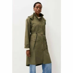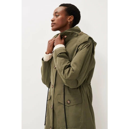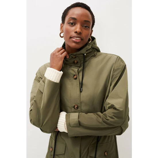 Utility is a key trend this season and their Chloe parka coat taps into this perfectly. Designed in a versatile khaki shade, this hooded shower proof style has a button placket on the front and at the back, functional pockets, sleeve tabs and adjustable toggles at the waist and collar for a secure fit. Layer yours over a jumper and jeans for afternoon walks..