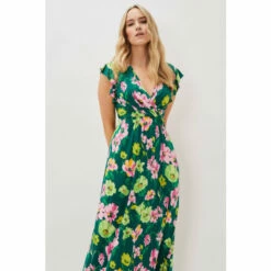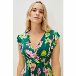 A dress that’s sure to wow at all your upcoming occasions. Designed with a gorgeous floral print, They love the short sleeves that’s framed with ruffles and the faux wrap bodice that creates a feminine V-neckline. The adjustable tie back belt is perfect for accentuating your waist, and this dress comes to a loose, flowing silhouette. Just add heels and a matching clutch.