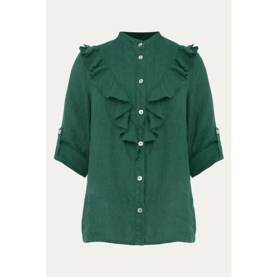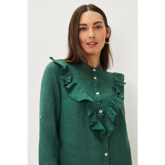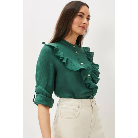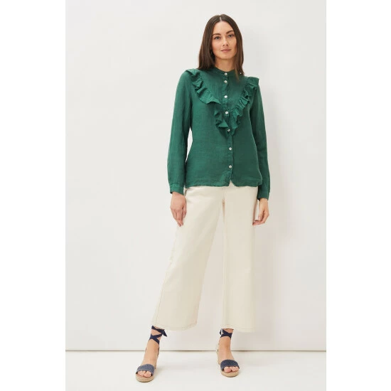 Crated from 100% linen, this staple blouse features a contemporary twist. Designed with delicate frill detailing, they’ll be wearing this with neutral trousers for an effortlessly stylish outfit.