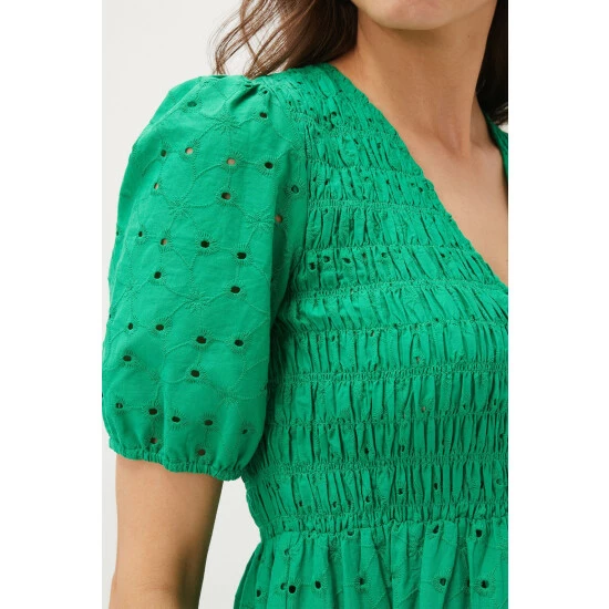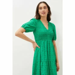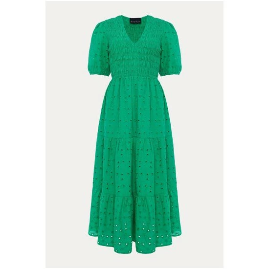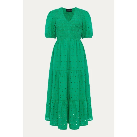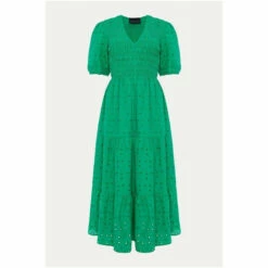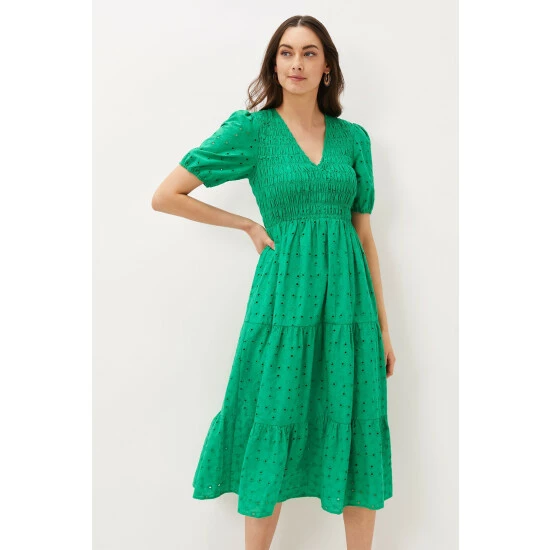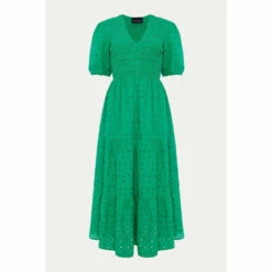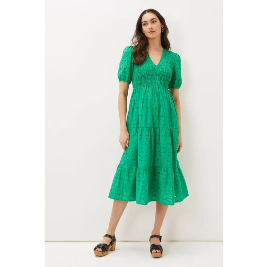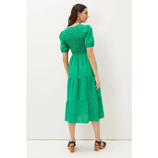 Featuring all-over pure-cotton broderie, the Gretta dress has a chic, green modern look that will update your go-to day dress for the season. Designed with on-trend puff short sleeves, a shirred bodice, a feminine V-neckline and a flowy, tiered skirt, this dress is perfect for holidays and warmer days in the city. By choosing their cotton products, you’re supporting their investment in Better Cotton s mission.