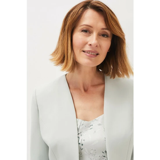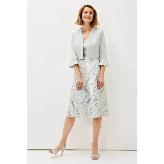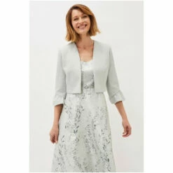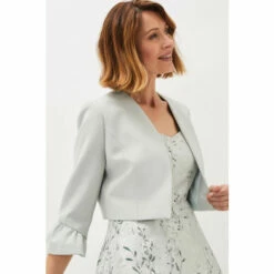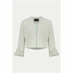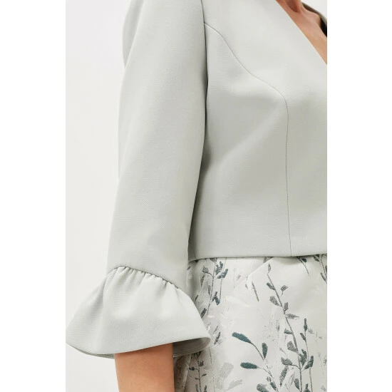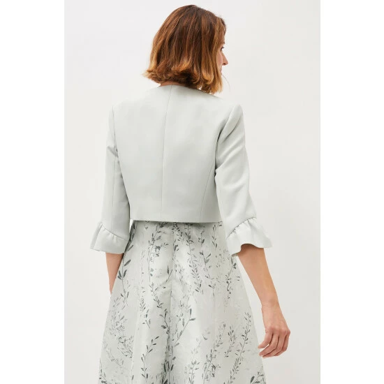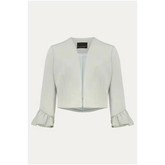 Add the finishing touch to your occasion outfit with this fitted open front jacket, designed with frilled sleeve cuffs for a dramatic finish.