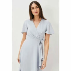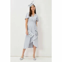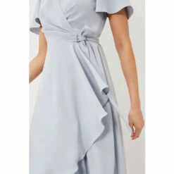 The perfect occasion dress, our Julissa wrap dress is a must-have this season. Designed in a beautiful baby blue shade, our dress features a self tie waist and frilled edge detailing, creating an effortless layered silhouette. For the ultimate wedding guest look, pair with a fascinator and matching accessories.