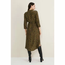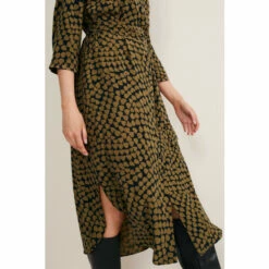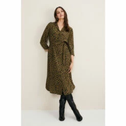 A new style for us that’s the perfect day-to-night piece. Our khaki Kesia dress is designed with contrast coloured love hearts to a flattering shirt dress silhouette with a self-tie waist belt. We wear ours with knee high boots for the perfect desk-to-dinner look. This style is responsibly sourced. This style has been made from certified renewable wood sources. LENZING™ ECOVERO™ viscose uses a responsible production process, generating up to 50% lower emissions and water impact than generic viscose.