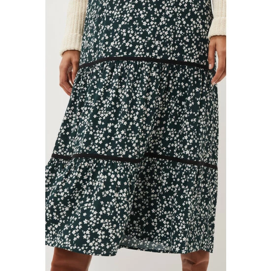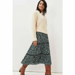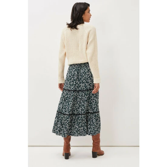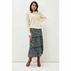 A printed skirt will instantly update your new season wardrobe. This maxi style sits high on the waist and features feminine tiering. We re wearing ours with a chunky knit and knee leather boots.