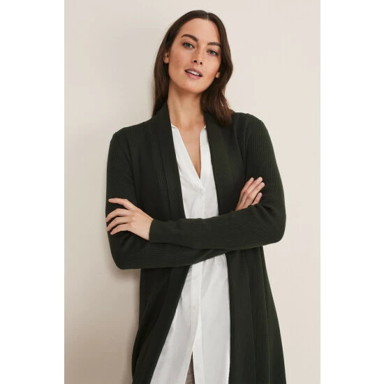 A signature of ours, our versatile Louise cardigan is designed in a longline silhouette, with a ribbed shawl neckline and long sleeves. It’s perfect for wearing over all your day-to-day looks.
