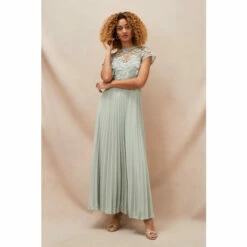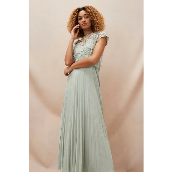 If you’re looking for a dress for your most important RSVPs, our Michelle style is a beautiful choice. The detachable lace bodice features a delicate border trim and sheer short sleeves and the pleated maxi skirt creates wonderful movement as you walk. Perfect for bridesmaid style or special occasions.