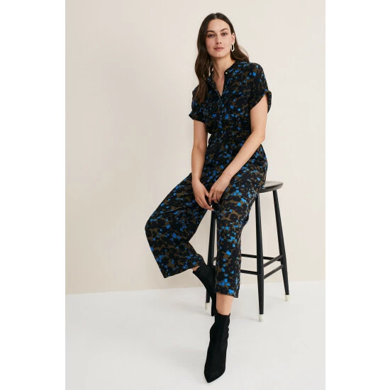 The statement jumpsuit your wardrobe needs. Designed in a bold abstract print, our Nell jumpsuit features a classic collar, short sleeves and falls to a flattering wide leg silhouette. This is the perfect day-to-night style.