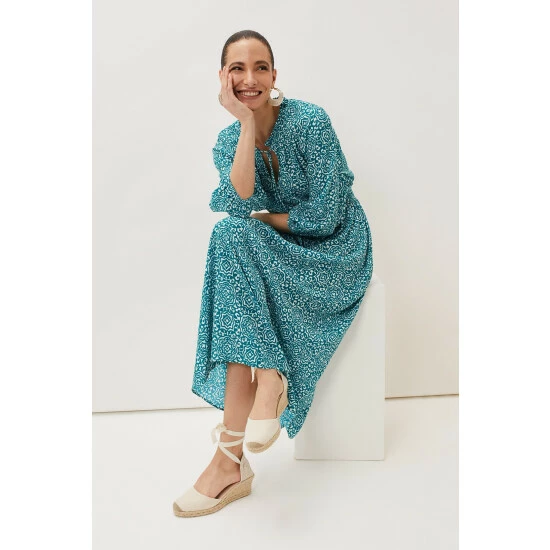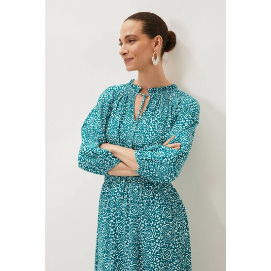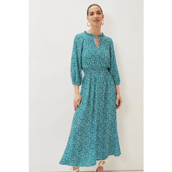Phase Eight’s much-loved Phillipa dress, now in a gorgeous teal bohemian print. Designed in a versatile in-between maxi-and-midi length, this elegant silhouette is accentuated by an elasticated waistband and finished with a feminine keyhole necktie. This is the perfect spring summer staple to add to your wardrobe.