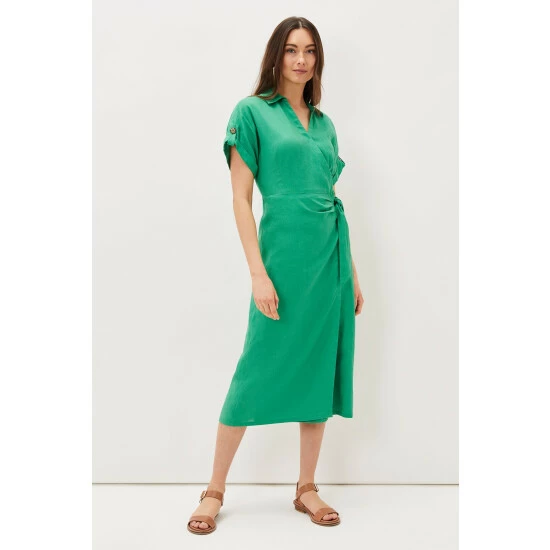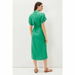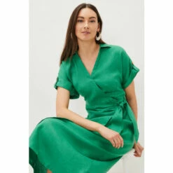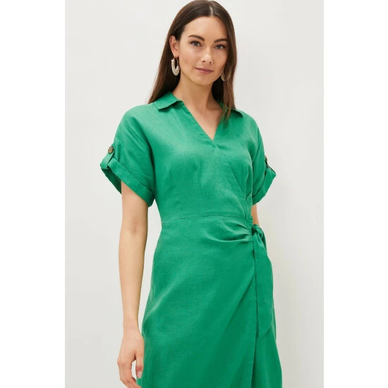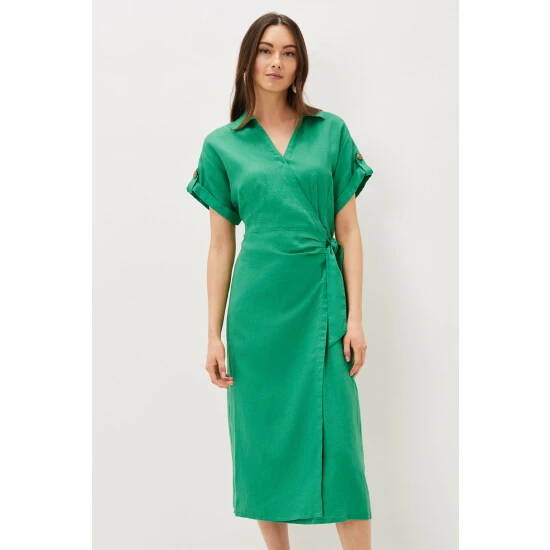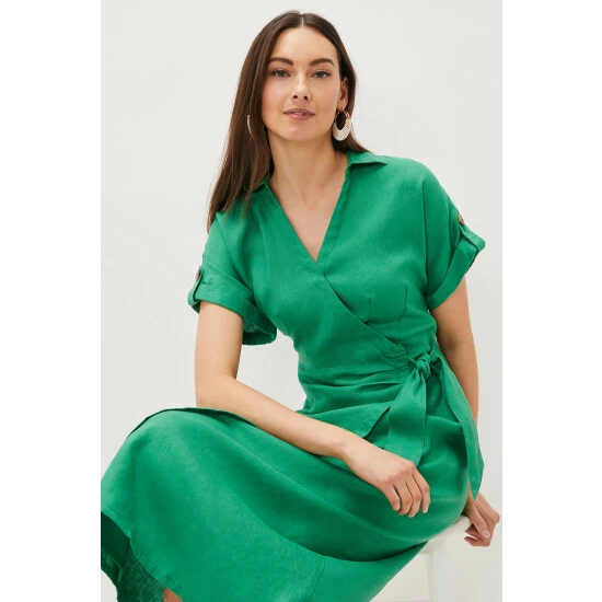 A dress you’ll reach for time and time again. Cut from airy, 100% linen this shirt wrap style dress features seam detailing down the bodice, turned up sleeves and an elasticated back. They’ll be wearing this with sandals and trainers.