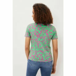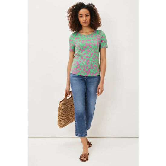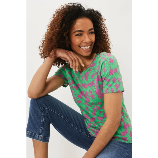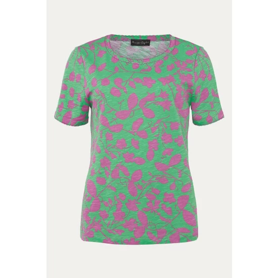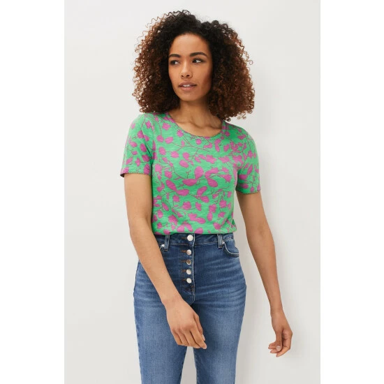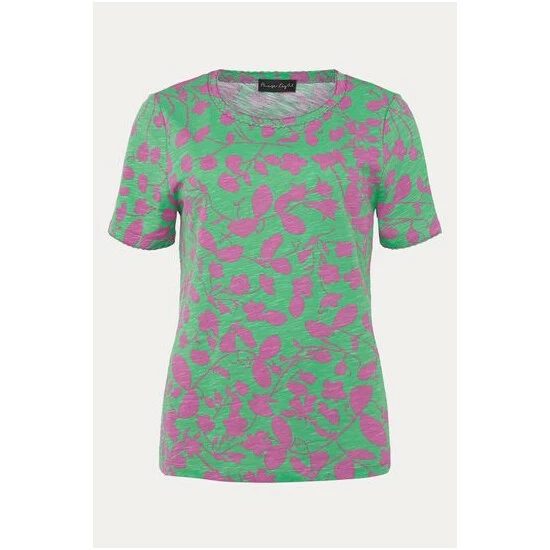 You’ll never want to take this top off. Crafted from 100% cotton, this comfortable top features short sleeves and an all-over emerald and pink floral print. This style looks great when paired with jeans.